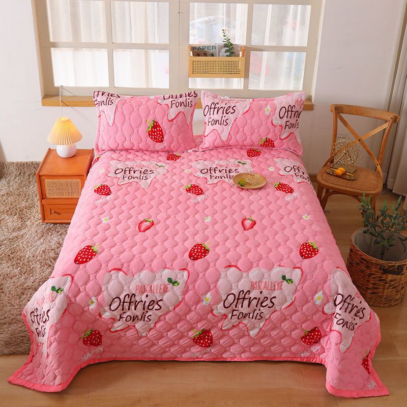 クリスタルベルベットのベッドカバー一枚三点セットキルティング技術二重綿冬の毛布畳カバーとベルベットシーツ