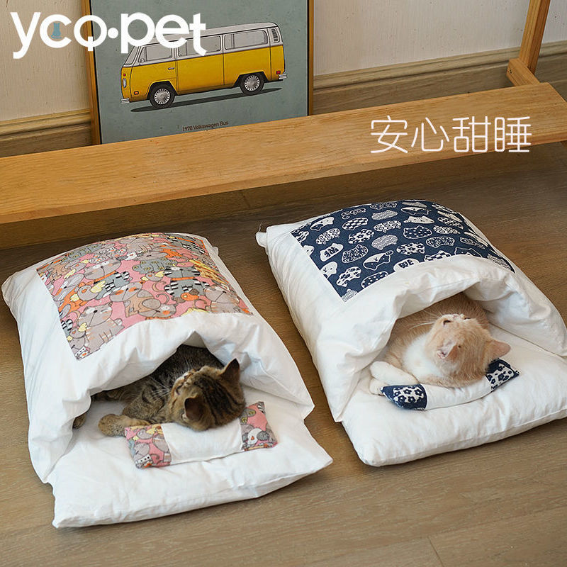 猫の猫の寝袋は冬に暖かくて、可愛い猫の布団を分解して洗うことができます。