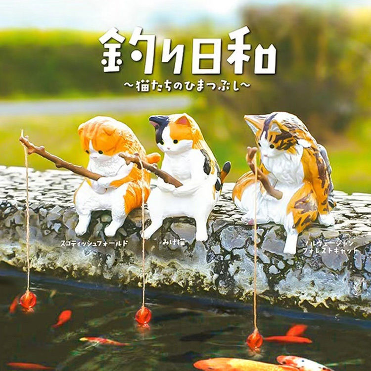 新型シミュレーション置物猫釣り癒し系人形創意可愛い置物