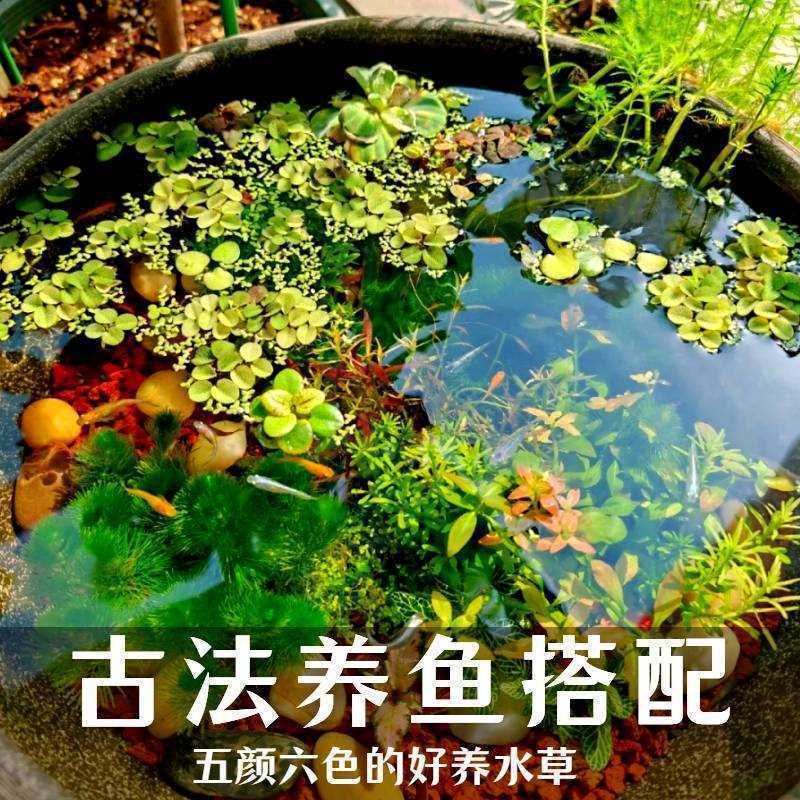 古法養魚水草生態原生かめ怠け者植物紅丁南極杉一葉蓮浮萍水草コース