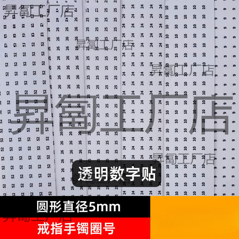 透明デジタルステッカー pvc ライブブロードキャスト 5 ミリメートルラウンド黒文字リングブレスレットリング番号サイズデジタルラベルステッカー