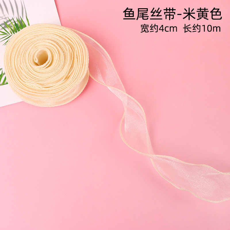 オーガンザリボン女性の日ホリデーバンド装飾ホワイトパウダーウェーブエッジ中国のバレンタインデーの花リボン手作り