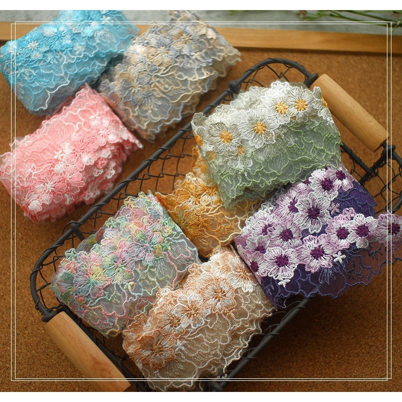 新鮮な花のカラフルなメッシュ刺繍レースアクセサリー衣類チャイナドレスベビー服漢服装飾レース