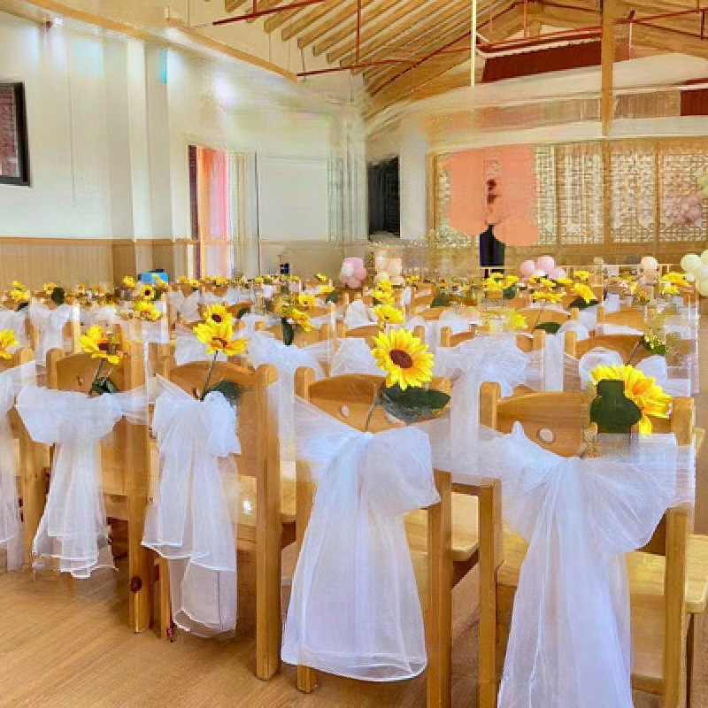 ガーゼ幼稚園小さな椅子装飾ガーゼ結婚式の椅子背もたれガーゼフラワースイス竹椅子屋外結婚式白ガーゼアレンジメント