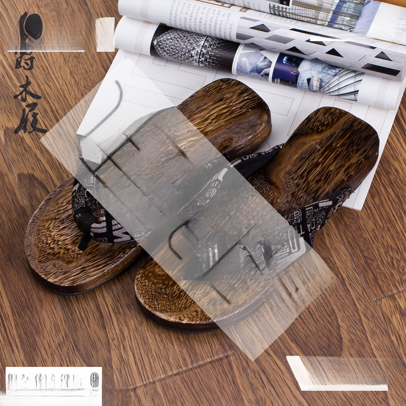 男性用下駄スリッパ/男性用/平ヒール丸頭/木頭靴積角頭