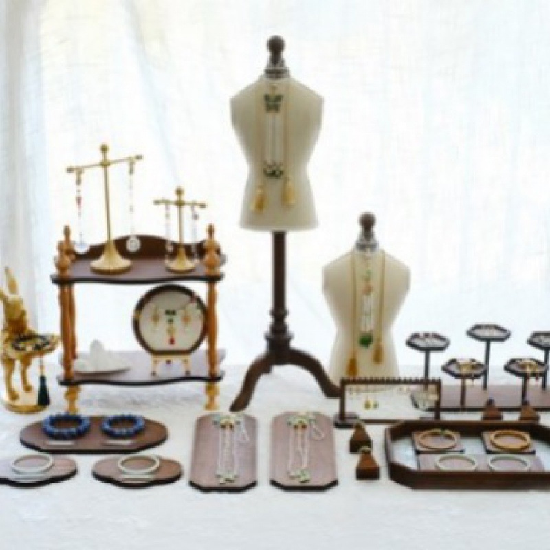 中国のレトロな二層ジュエリーディスプレイスタンドジュエリー収納ラックネックレスイヤリングリング写真ディスプレイ小道具