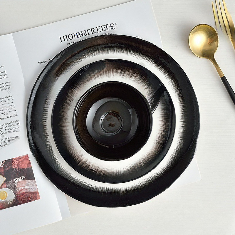 ダークオルタナティブスタイルの食器手描きセラミックプレートアートディナープレートコーヒーカップ洋食プレート