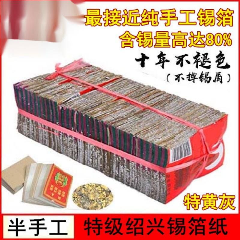 紹興本物の錫箔 1000 枚の金と銀の紙黄色とグレーの半手作り折り元宝紙幣用品送料無料 Metabo