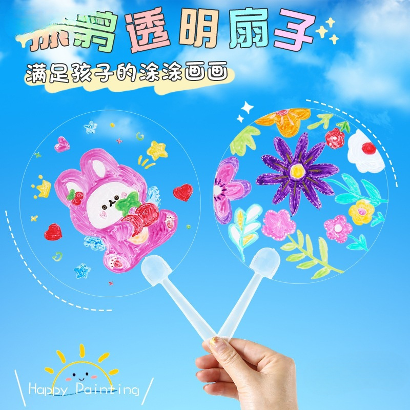 材料バッグ扇子絵画空白落書き透明絵画子供手作りdiy落書き団扇円扇P麦太保