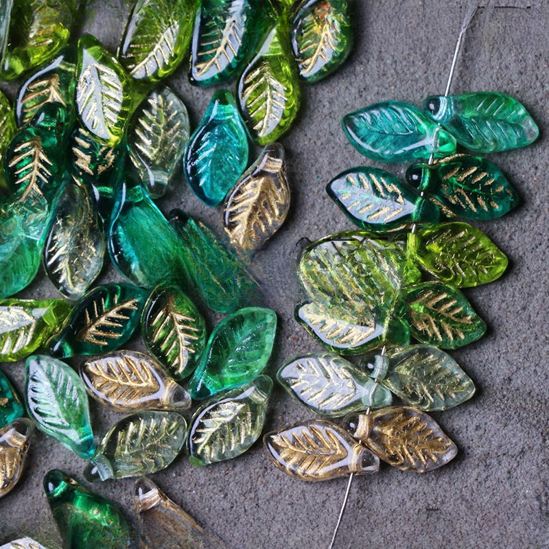 チェコビーズ色月桂叶小叶ガラスビーズ瑠璃珠手作りアクセサリーアクセサリー材料