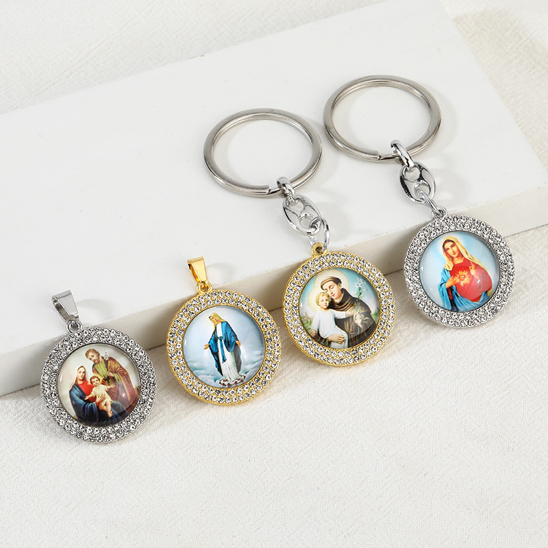 メーカー直販クロスボーダー熱売temu合金キーホルダー個性宗教聖母スタンプペンダントアクセサリー部品