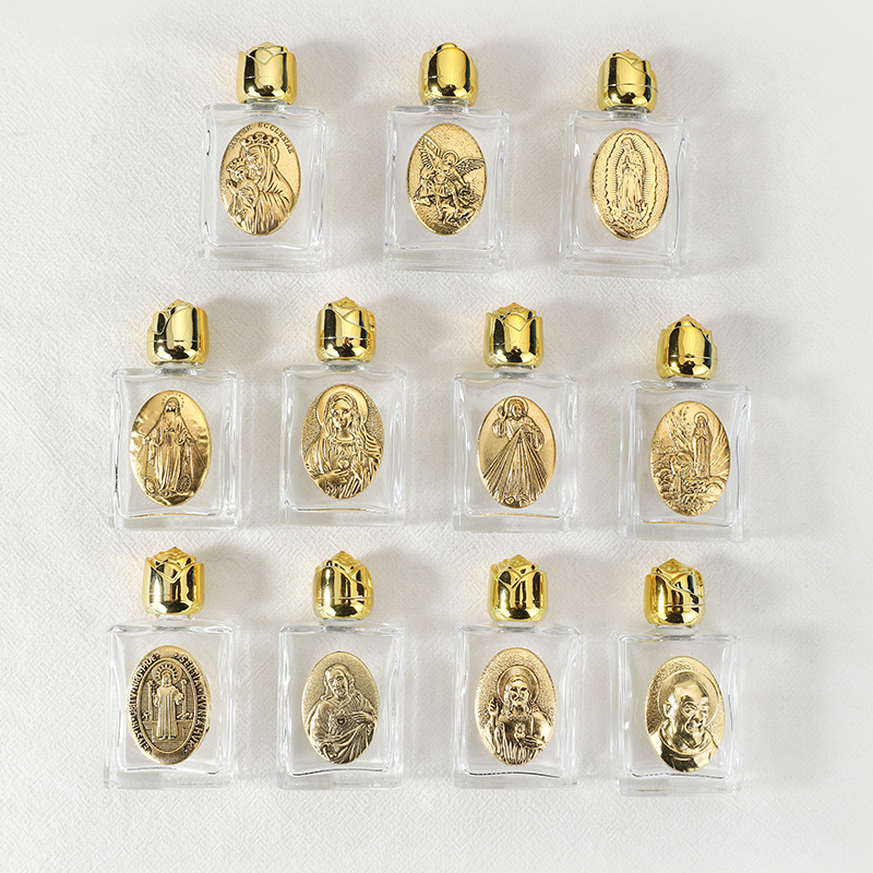 国境を越えたバラのガラス瓶クロス洗礼聖母の人物金属聖水瓶置物DIYプレゼント