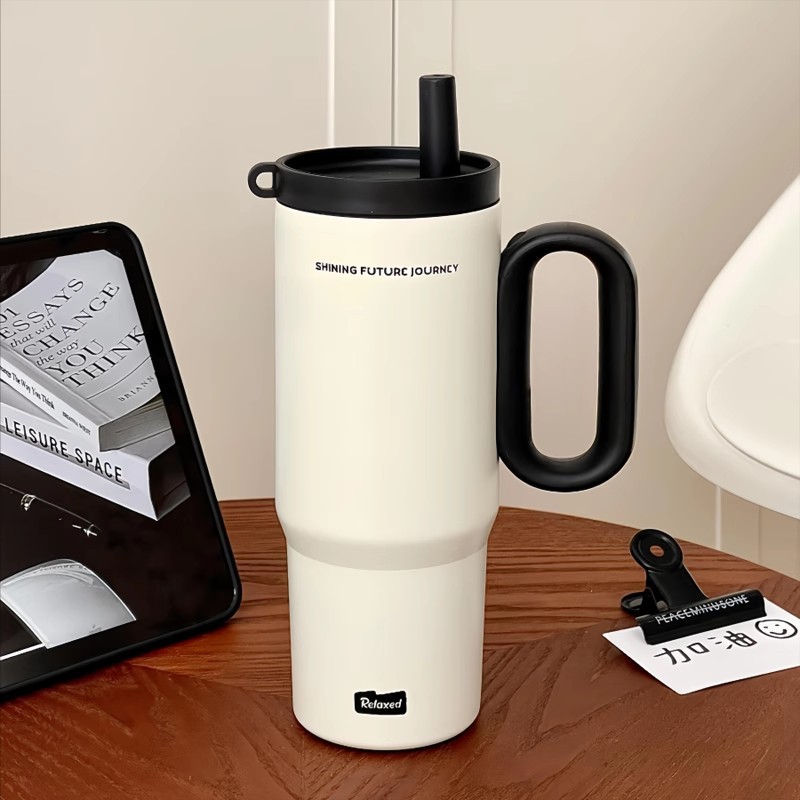 ポータブルコーヒーカップ、大容量カップ、学生用の新しい316ステンレス鋼ウォーターカップ、女性用の見栄えの良いストロー魔法瓶カップ