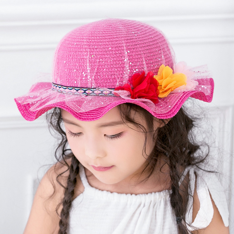 春と夏の新しいサンハットカジュアルビーチ旅行麦わら帽子女の子と子供スパンコールメッシュトップハット卸売