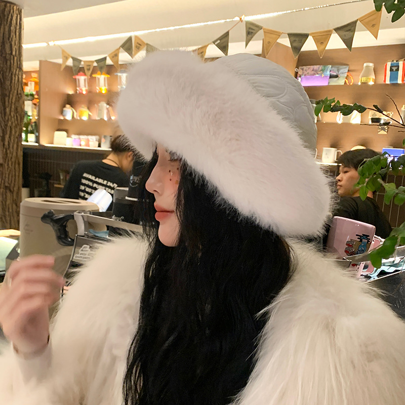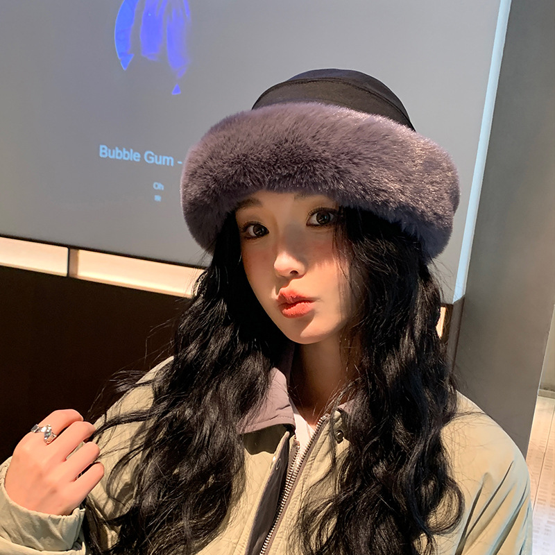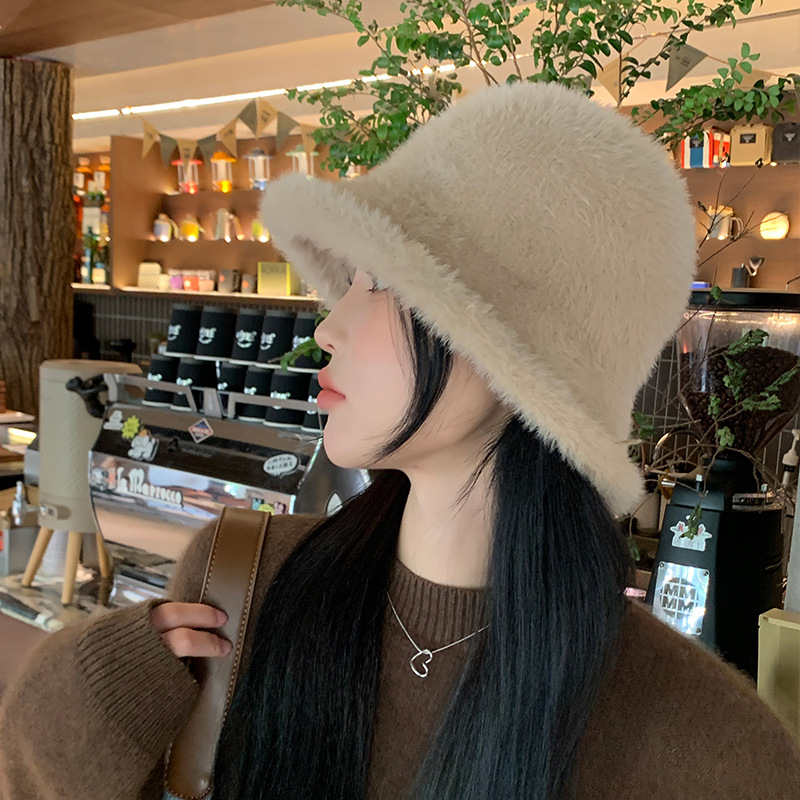 秋と冬の新しいスタイルの女性用ファーフィッシャーマンハット、屋外で暖かく顔を見せます、小さな無地、シンプルでファッショナブルなバケットハット、トレンディです。