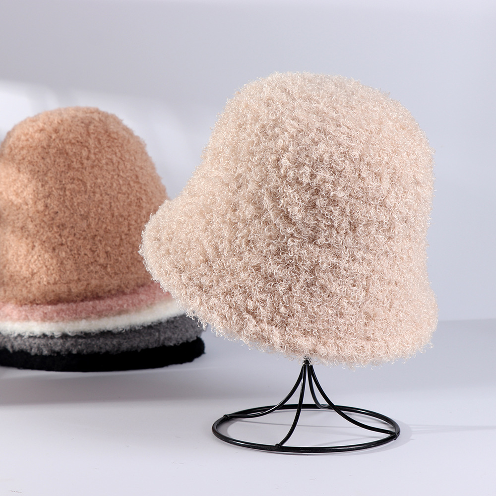 豪華な暖かいバケットハット、秋と冬の帽子、新しい和風盆地帽子、女性の無地の顔が見える小さな漁師の帽子卸売