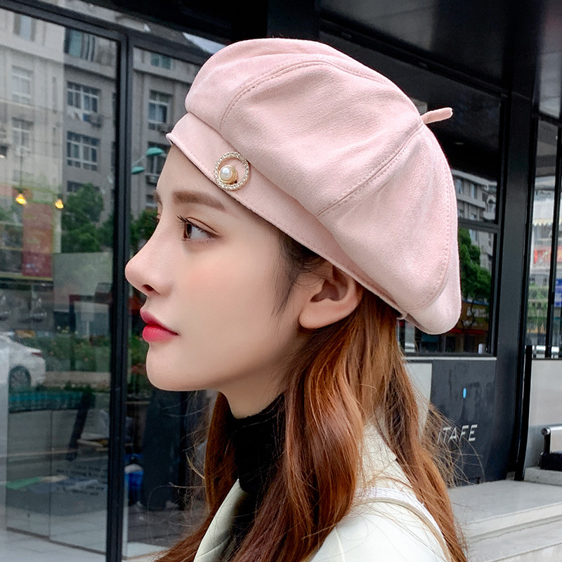 秋の女性の韓国スタイルの無地多用途カボチャ帽子ファッショナブルなアウトドア旅行パールダイヤモンドベレー帽ドロップシッピング