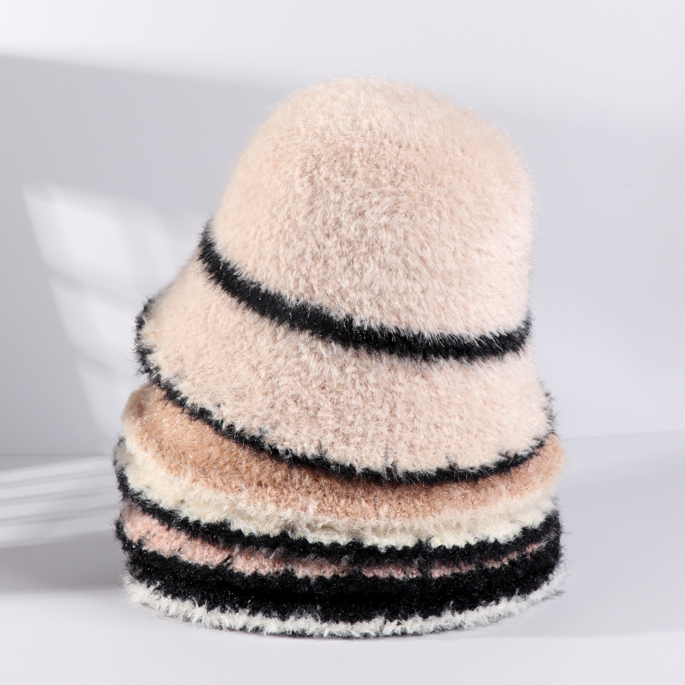 秋と冬のストライプカラーブロックバケットハットレディースカジュアル顔見せ小型アウトドア旅行暖かい漁師帽子ファッショナブルな盆地帽子