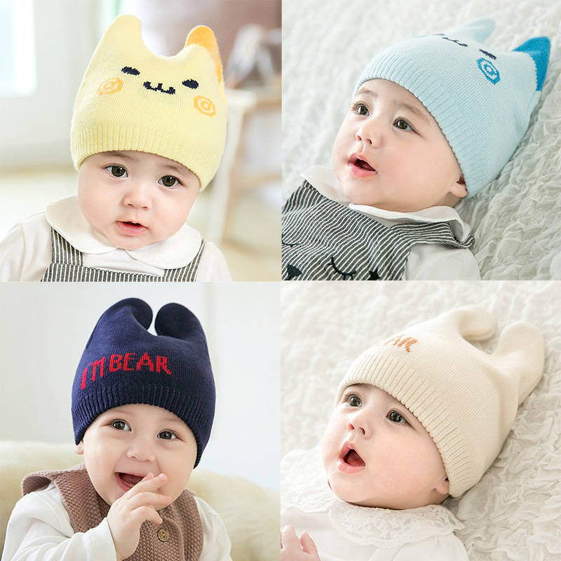 ベビー帽子、胎児帽子、ベビーニット帽、幼児秋冬暖かい秋冬かわいい漫画プルオーバー帽子トレンディ