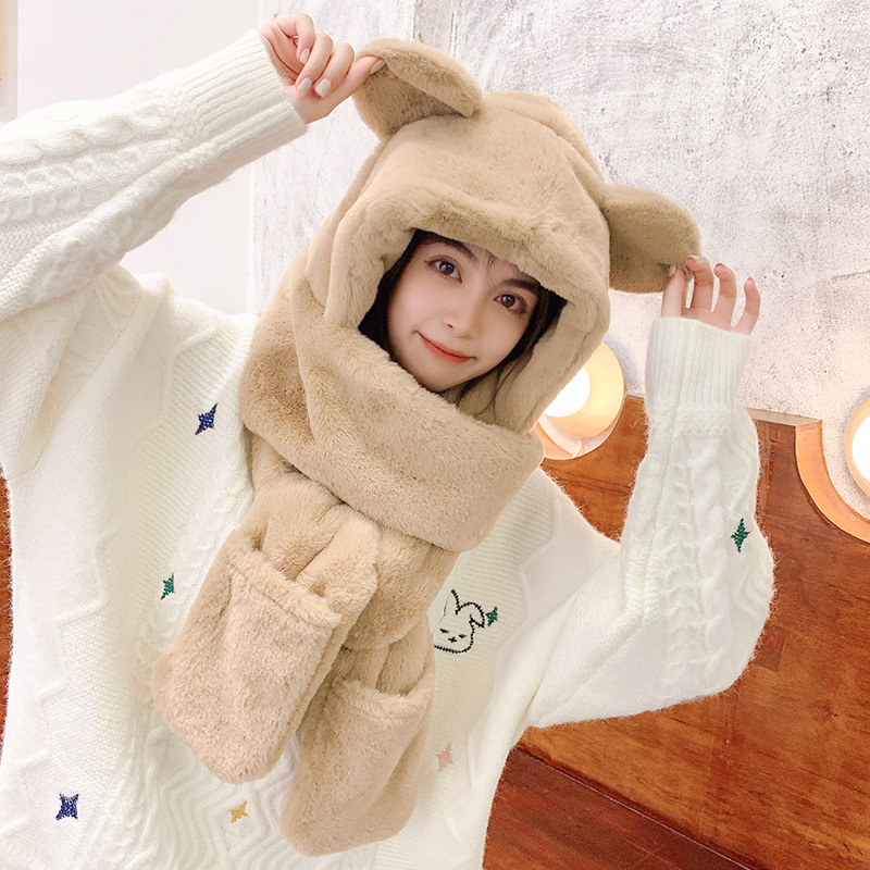 新しい女性の秋と冬のプルオーバー帽子女性の豪華なかわいい漫画の手袋スカーフ帽子ワンピーススーツ卸売