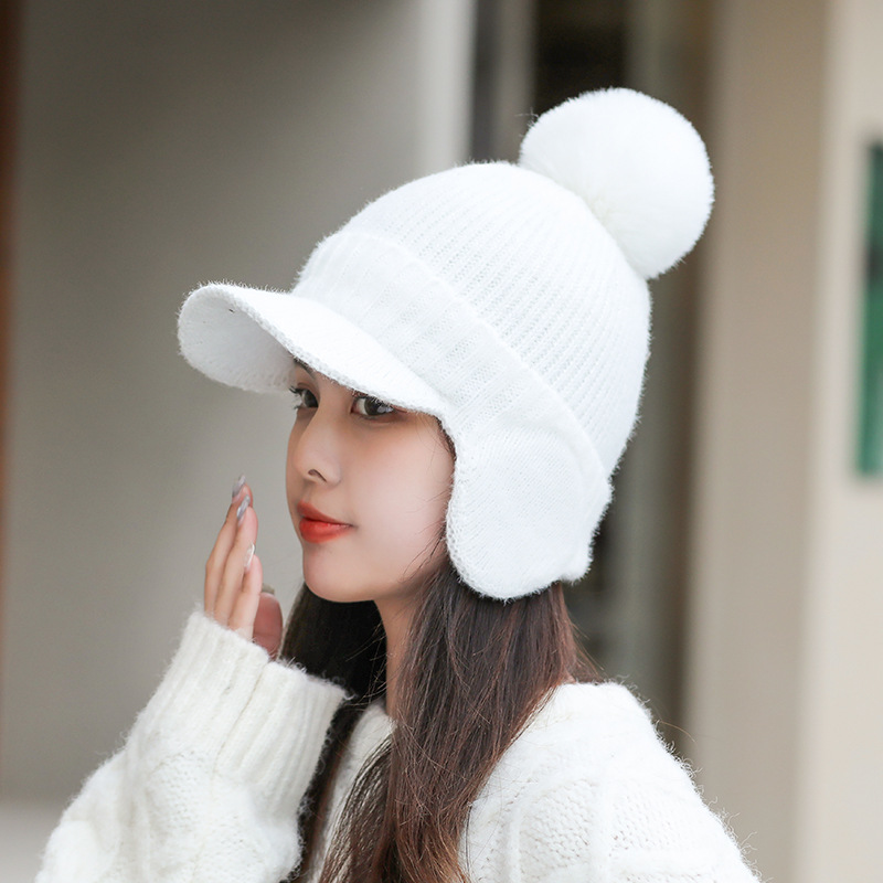 韓国スタイルの女性の新しい秋と冬の毛玉ニット耳保護野球帽アウトドアスポーツプラスベルベット暖かいアヒルの舌帽子
