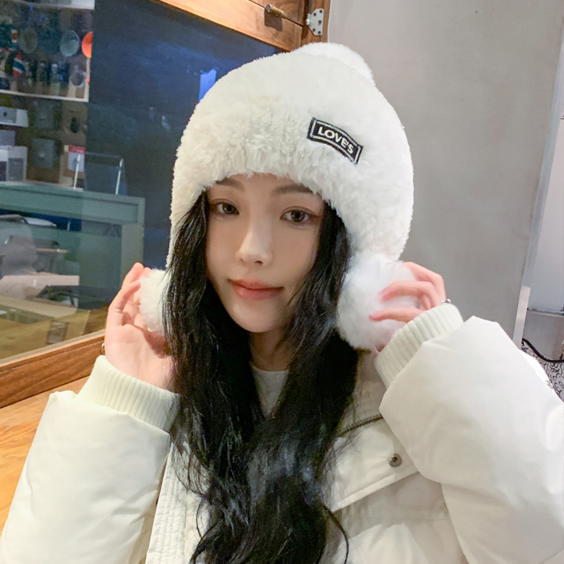 日本の新しいスタイルの女性の甘くてかわいい耳ぬいぐるみプルオーバー帽子秋と冬厚く暖かいニット防寒帽子卸売