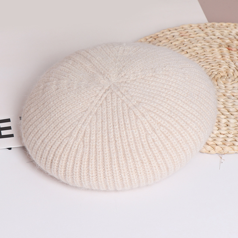 新しい秋と冬のニットウサギの毛皮暖かいカールレディースベレー帽カジュアルファッション無地ウールキノコ帽子