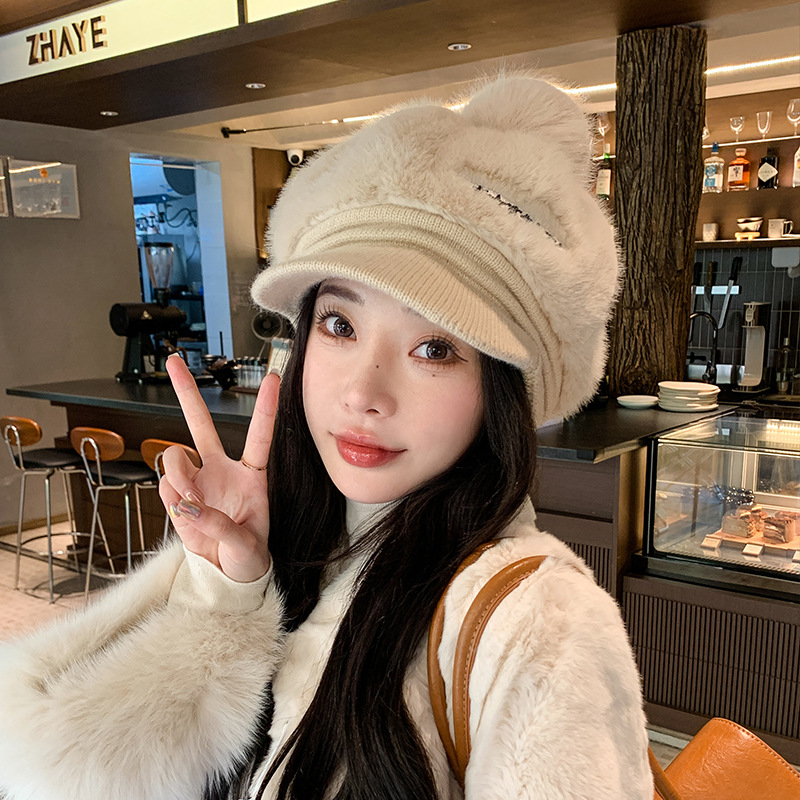 新しいスタイルの女性用帽子、秋と冬の暖かい豪華なひさしキャップ、アウトドアファッション、ハイエンドのニッチファーボールベレー帽