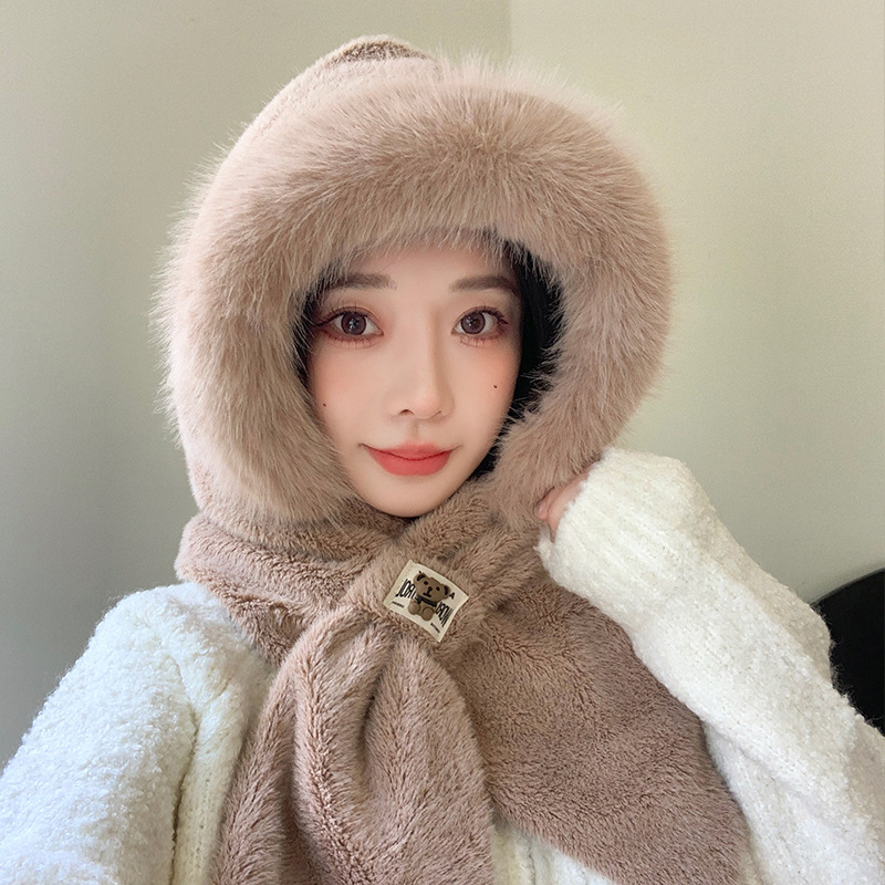 秋と冬の女性の暖かいサイクリング帽子とスカーフオールインワンインターネットセレブ防風厚みのある韓国スタイルのつま先耳保護サイクリング帽子