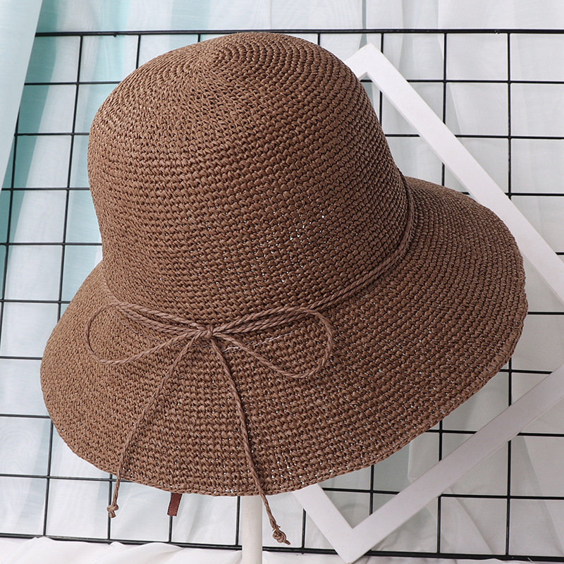 クロスボーダー新型夏帽子ニット通気布帽子女性日よけ日焼け止め漁師帽子蝶結び財布盆帽子