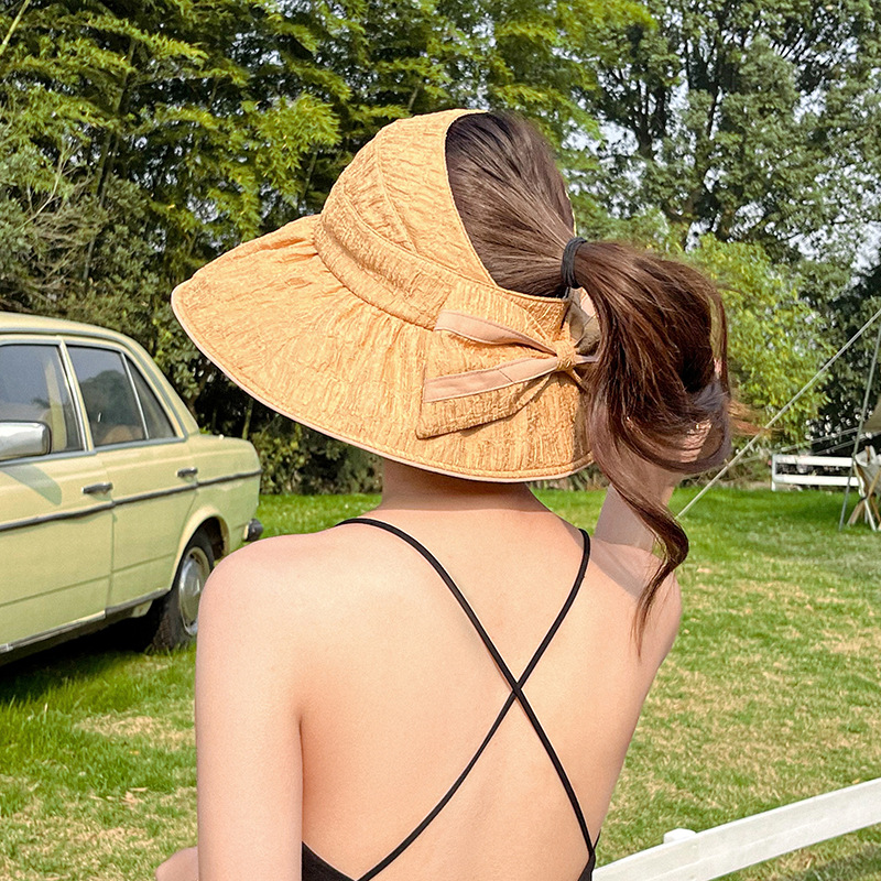 新しい韓国の蝶結びの大きい縁のトップなしの布の帽子の屋外の日よけの日よけのスポーツの空の帽子のファッション的な女性の帽子の潮