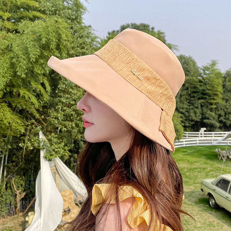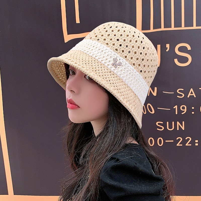 2023新型金属標バケツ帽夏漁師帽透かし通気日焼け止め日よけ帽子ファッション盆帽韓国版
