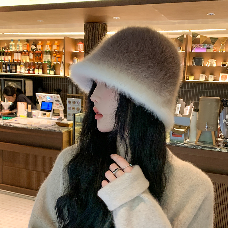 新型日系高級感グラデーション色ウサギ毛バケツ帽秋冬レジャー保温女性盆帽子卸売り