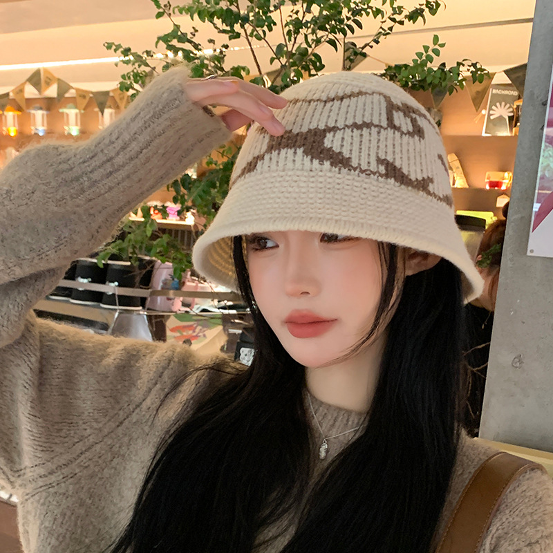 新しい秋冬の女性のニットの色合わせの模様の盆栽の帽子の屋外の保温レジャー旅行の韓国版のバケツの帽子の潮
