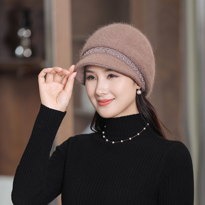 新型秋冬耳保護ニット中年女性母鴨舌帽屋外旅行はおばさんの毛糸帽子を厚くした
