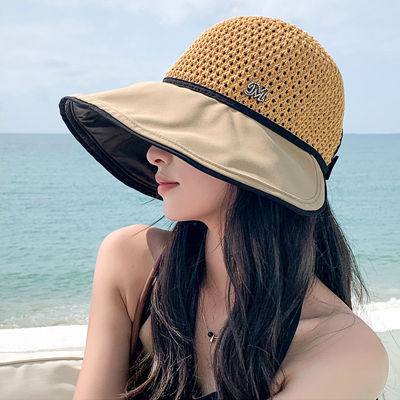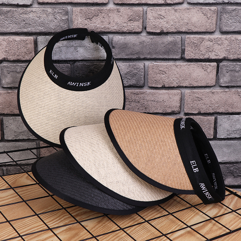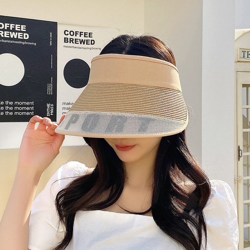 新型夏の女性草編み通気性無頂日焼け止め太陽帽カジュアル折り畳み可能な超大型日除け空頂帽子