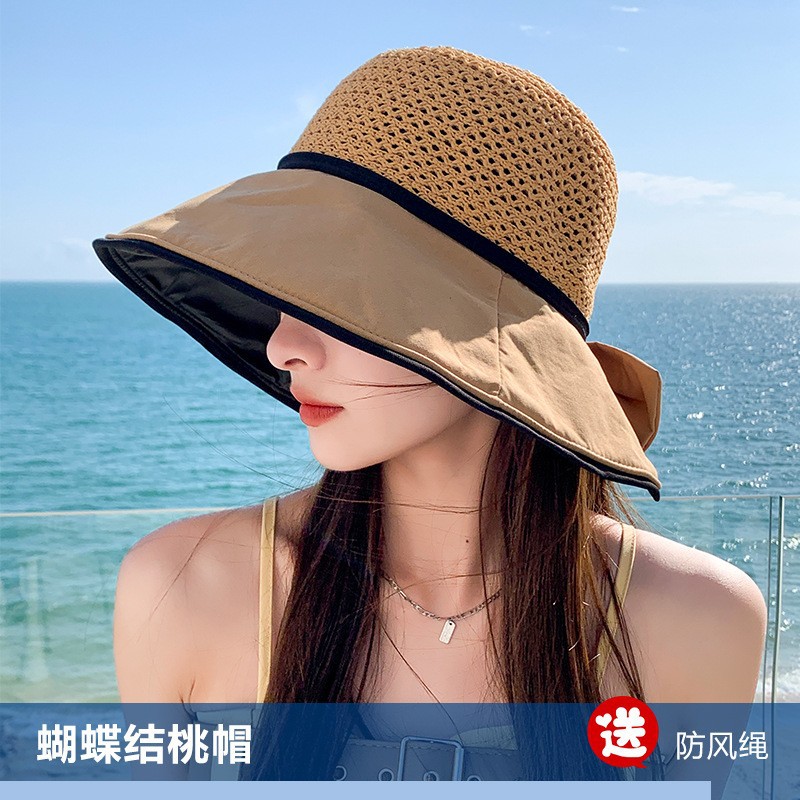 新品夏韓国レディース黒ゴム日焼け止めキャップニットナチュラルシェードキャップボウタイ漁師帽ドーム盆帽