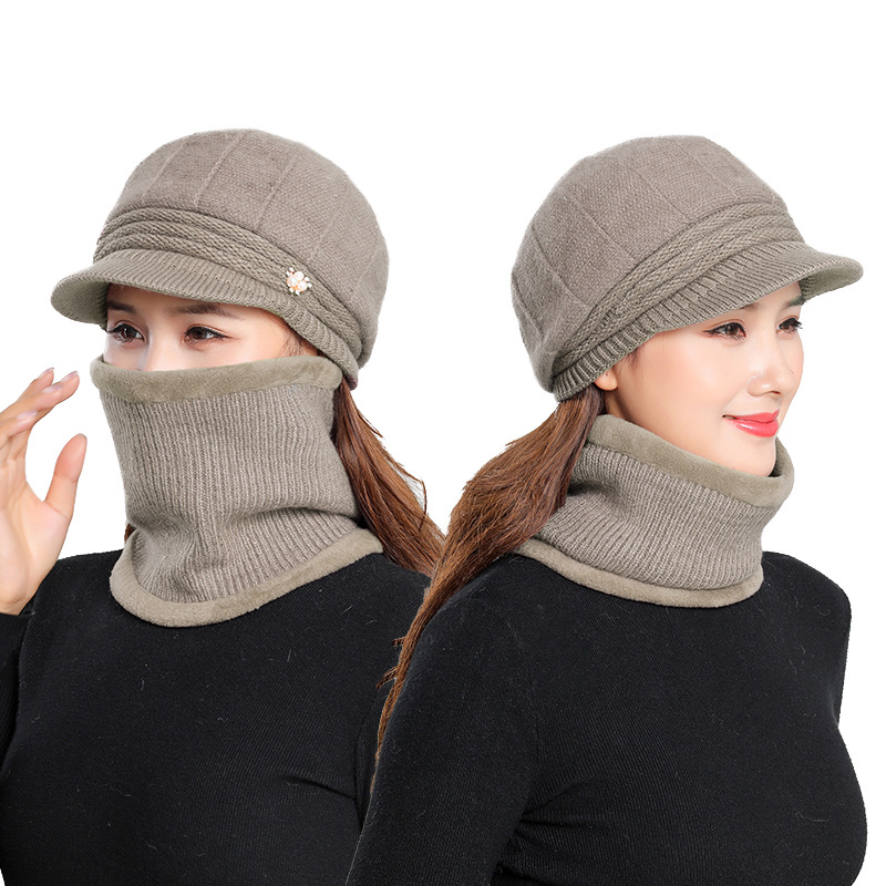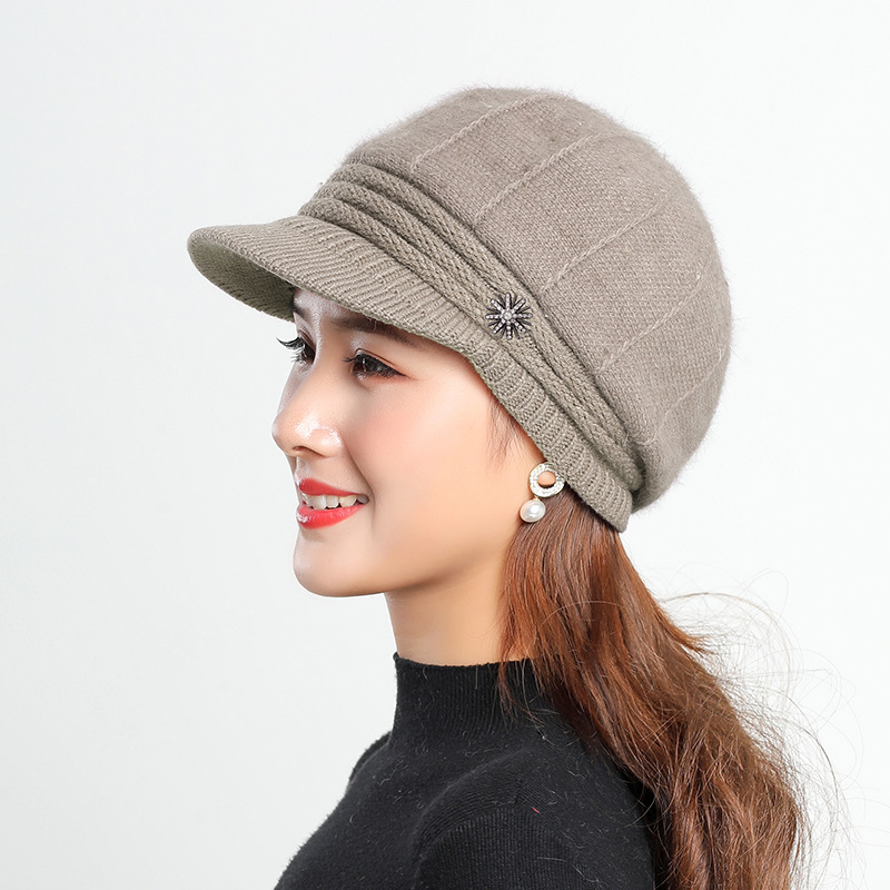 韓国版新型中高年女性ベルベット保温ベレー帽屋外旅行純色ニットアヒル舌帽子卸売り
