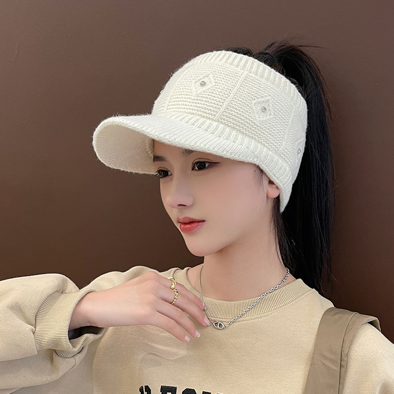 韓国版の新型のトップなしのニットのアヒルの舌の帽子の子供の秋冬の純色は馬尾の旅行の保温の毛糸の空の帽子を刺します。