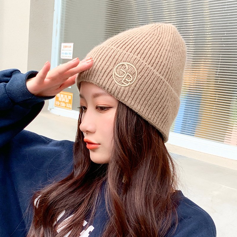 秋冬新作レディースニット単色アルファベット刺繍フリップフード屋外保温毛糸帽子卸売
