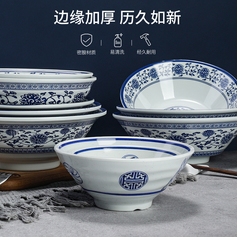 メラミン青花磁器碗商用闘笠碗ラッパ碗ホテルレトロ麺羊スープ牛肉ラーメン碗スープ