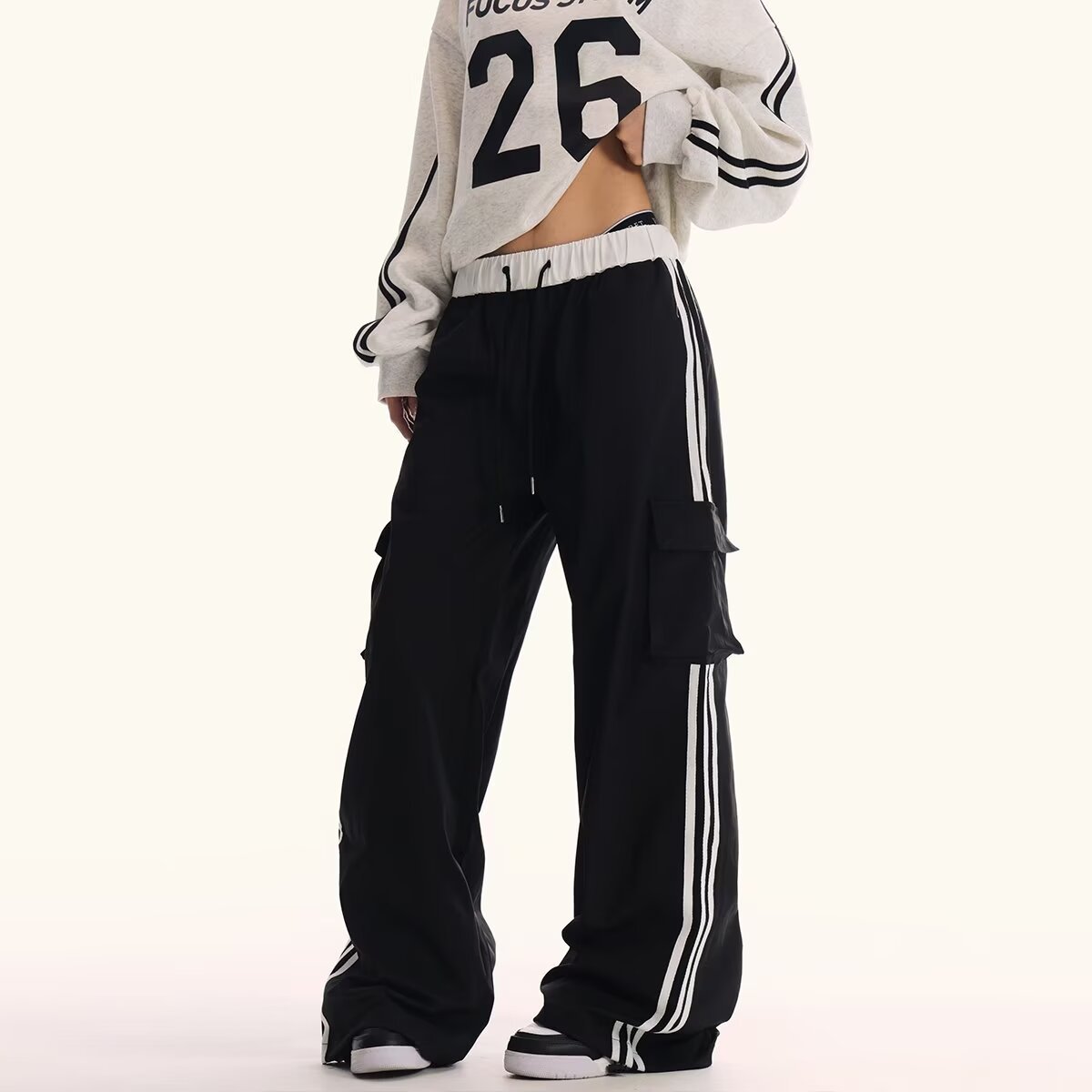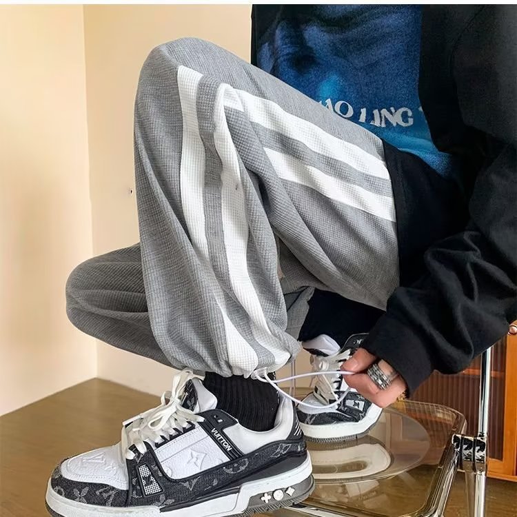 百合カジュアルパンツ男ゆるいストレートカジュアルパンツ2023潮男束足ズボン百合ins港風潮男ズボン