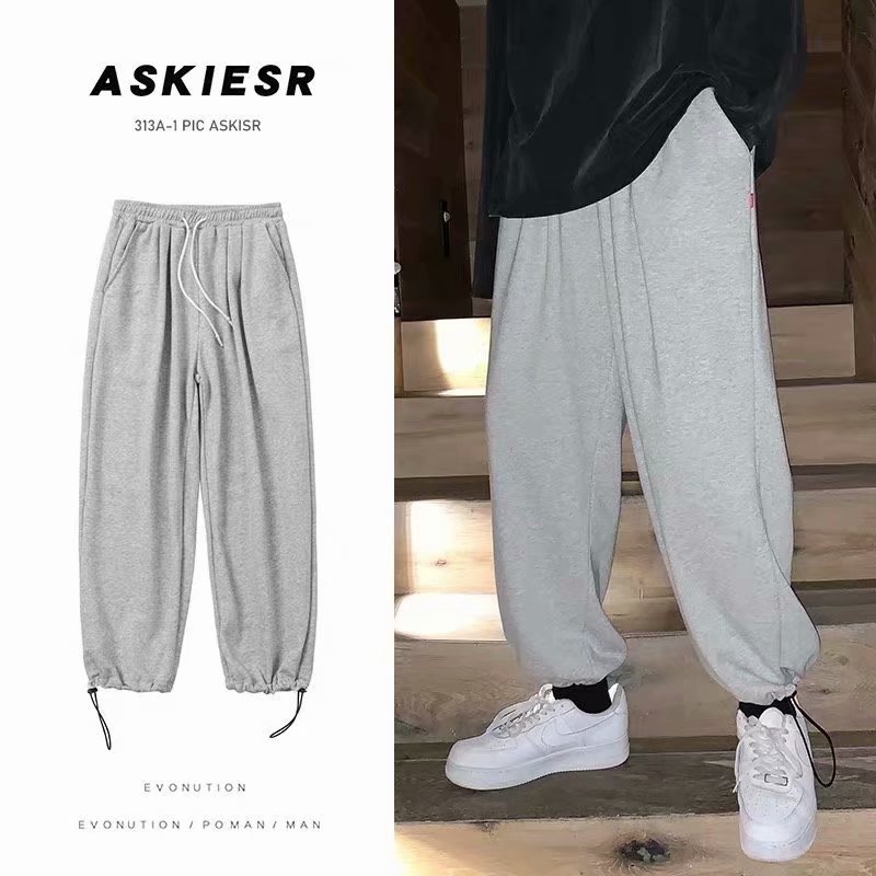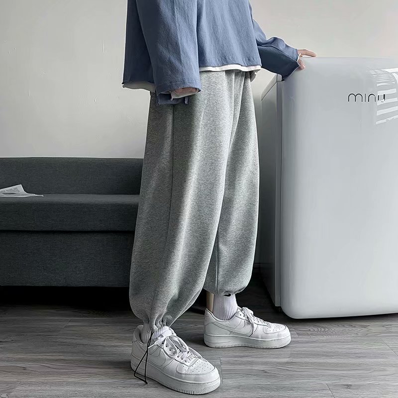 ひも引き衛ズボン男性insサイドしわスポーツパンツ春秋ゆるい足首ワイドパンツ学生カジュアル九分ズボン