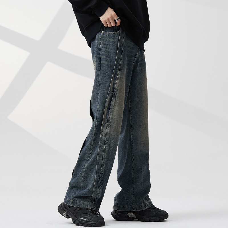 アメリカのゆるい広脚ジーンズ男春秋潮牌高街レトロ水洗いズボンカジュアルパンツ
