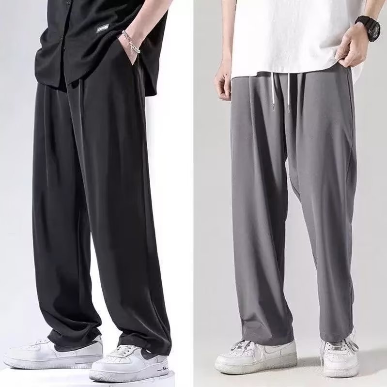 百合カジュアルパンツ男ゆるいストレートカジュアルパンツ2024潮男束足ズボン百合ins港風潮男ズボン