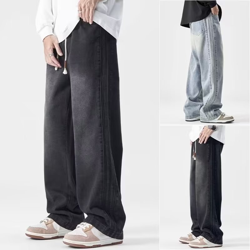 ジーンズ男春秋広脚ゆるいストレートパンツ2024新型アメリカ式高街潮牌カジュアル百合ズボン男
