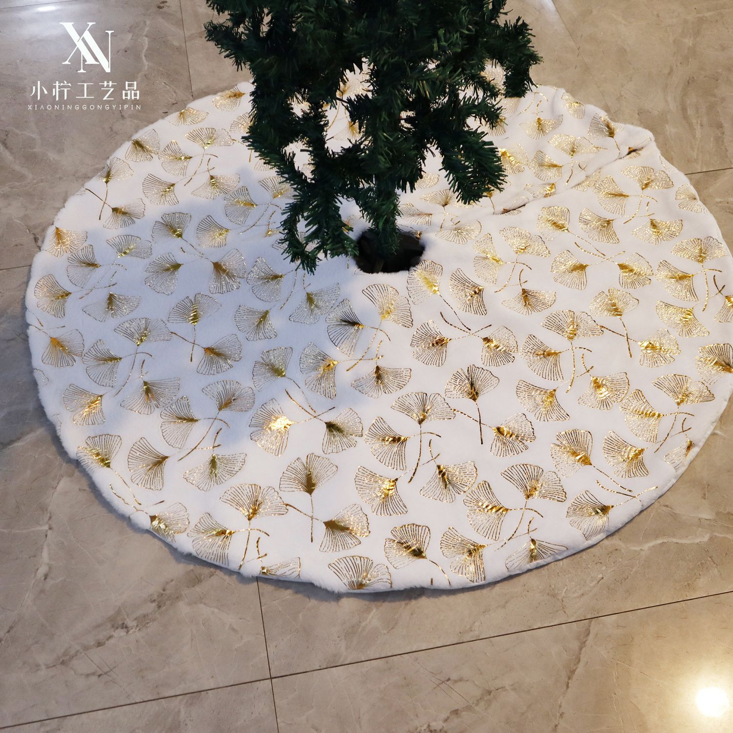 イチョウの葉、金色の葉、ホットスタンプクリスマスツリースカート、イミテーションウサギの毛の長いクリスマスツリースカート、装飾的なハイウェイトツリースカート