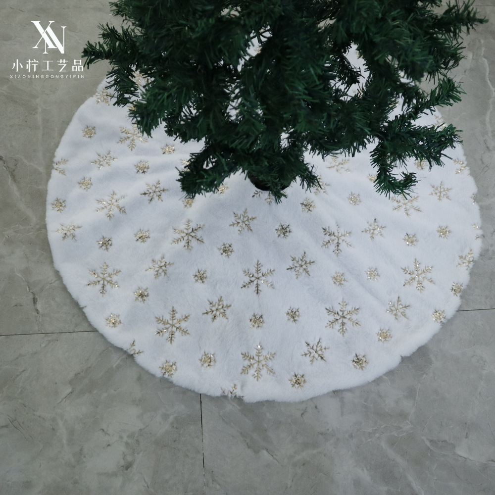 スパンコール刺繍スノーフレークゴールデンスパンコールツリースカートシルバーカラークリスマス装飾純白模造ウサギの毛スノーフレークツリースカート