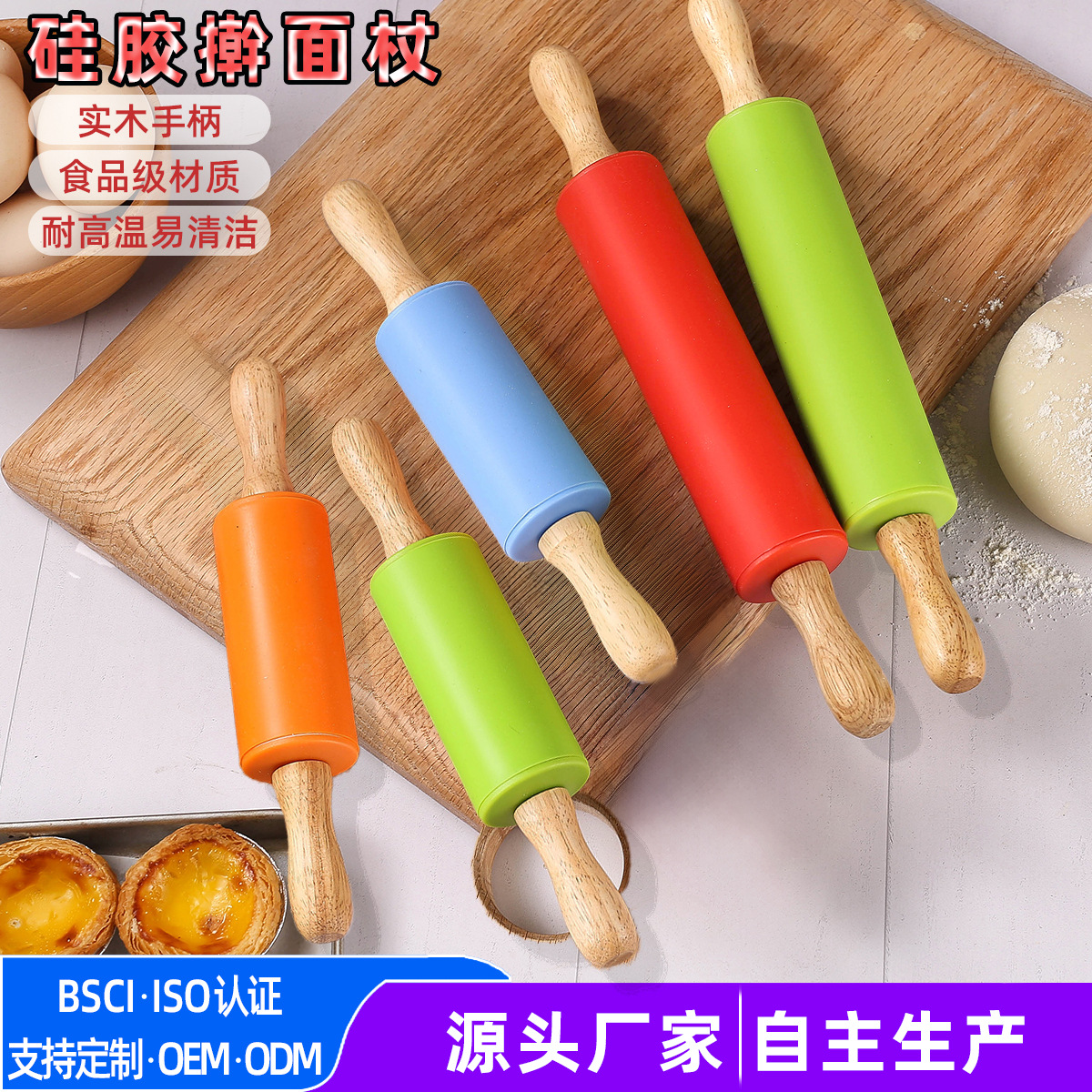 食品グレードのシリコーン麺棒肥厚無垢材ハンドルラウンドローラーノンスティック高温耐性麺棒ベーキングツール