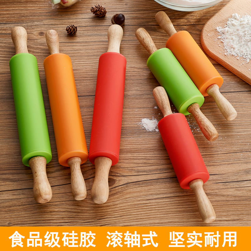 食品級の乾燥シリカゲルのめん棒の木の柄のローラー式めん棒は高温に耐えます。